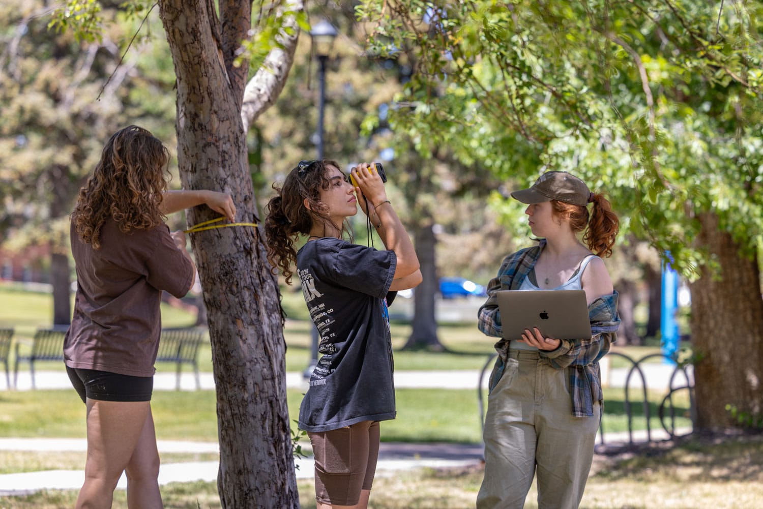 This precious resource is worth protecting. That’s why, this summer, students, faculty and staff at NAU are working together to take stock of the campus tree collection. Slowly but surely, a team of forestry and environmental scientists will collect information about the health, age and species of every single tree on the mountain campus—whether evergreen or deciduous, short or tall, native or invasive, thriving or rotting—and store the data on the software platform Treekeeper, which will also measure how much carbon each tree is sequestering. It’s possible they’ll be the first team at any American university to complete a full campus tree inventory.